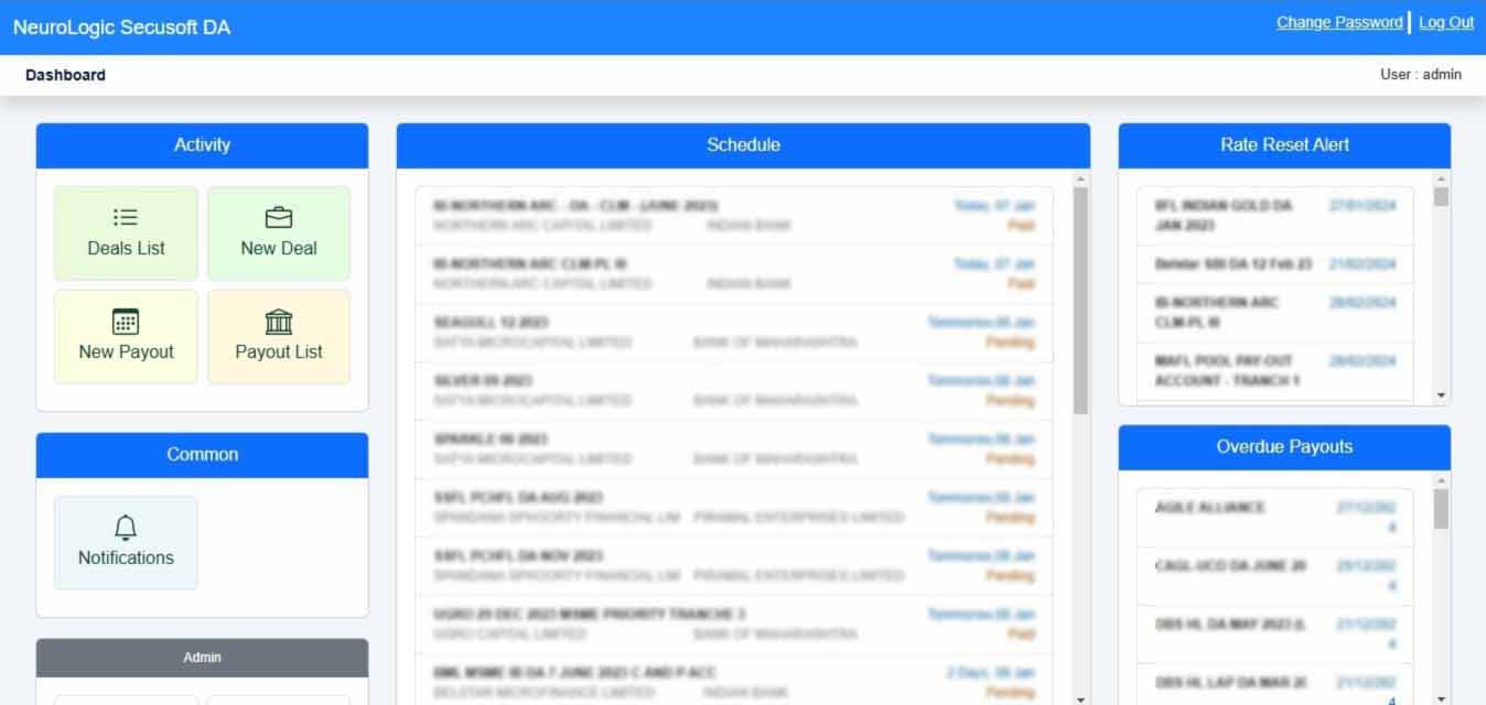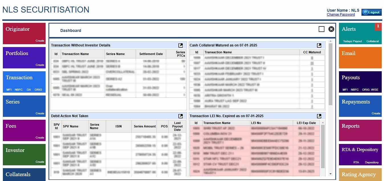 An software solution designed specifically for Trustee Companies to efficiently manage and monitor securitization transactions involving Pass-Through Certificates (PTCs). Our product streamlines the complexities of securitization, offering trustees a comprehensive platform for transaction oversight, payout management, and detailed reporting. Key Benefits: